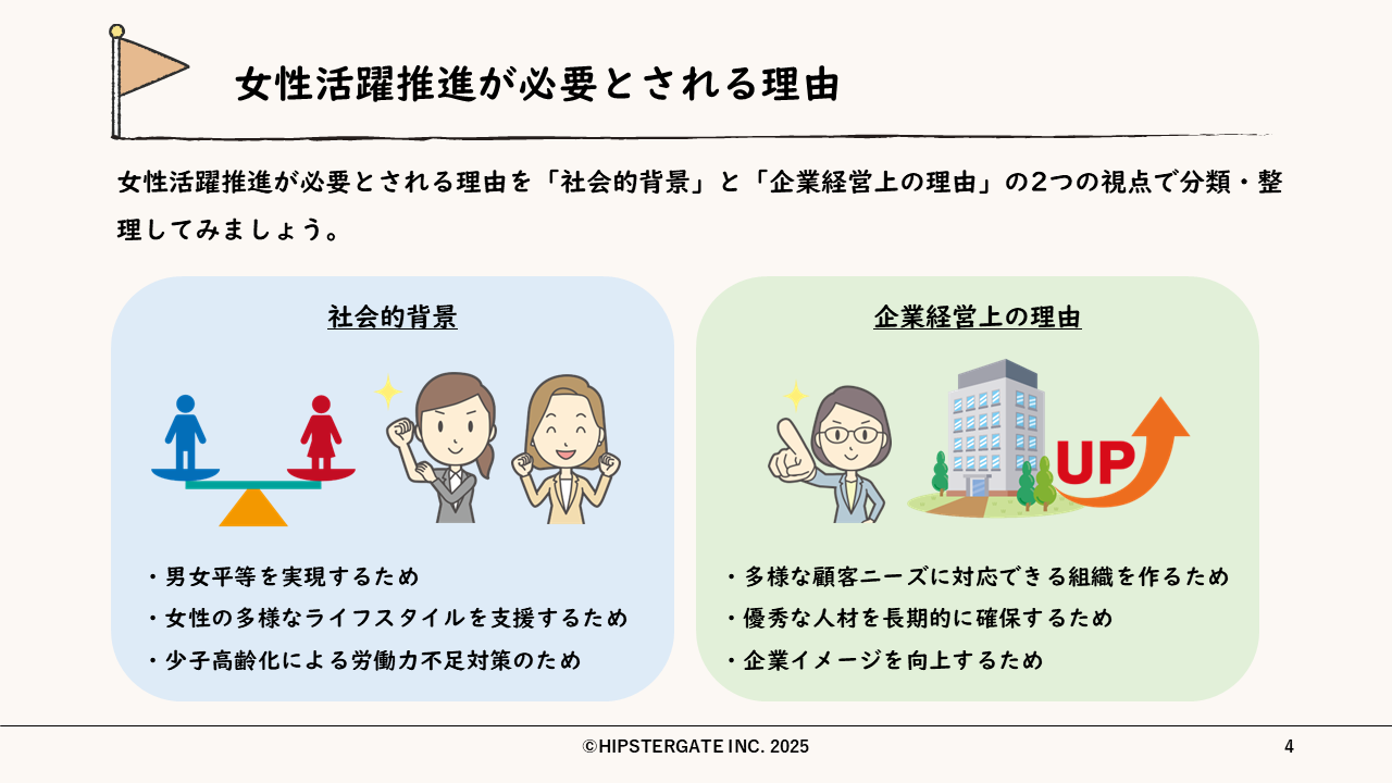 - 自社の女性活躍推進の目的やビジョンを共有する